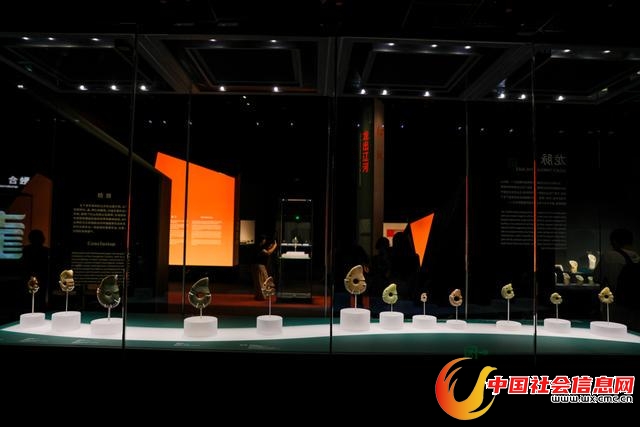 记者数了数,数量最多的是玉龙,仅一个展柜陈列的大小各异的玦形龙就有12件。学界认为,红山文化玉龙应是在继承距今约7000-6000年的左家山下层文化“玉龙”的基础上发展起来的。本次展览展出了一件这一时期玦形石龙,它出土于吉林农安左家山遗址,以灰白色霏细岩雕刻而成,其形制风格与红山文化玦形玉龙接近。