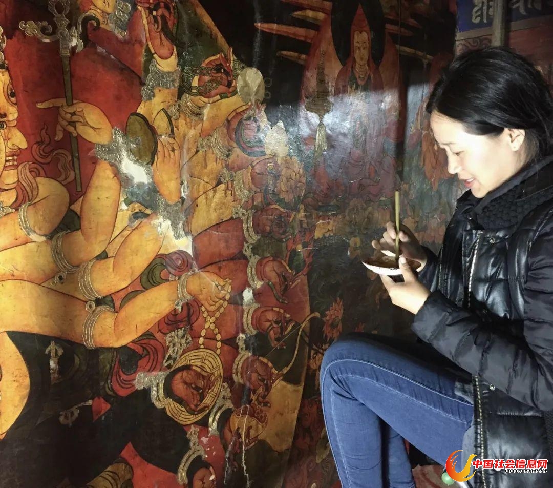 在甘肃拉卜楞寺参与修复壁画全色和接笔工作