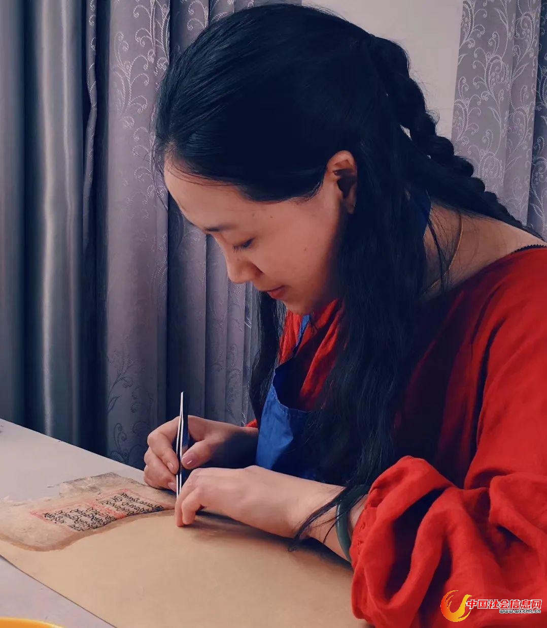 “师父说,你修完这本就算是入门了,我拿到这本的时候,发现它真的很残破,比一级破损还破。其实中间挺崩溃的,很多时候一天只能修一两叶,觉得没有成就感,感觉快不行了,只能不断给自己打气,最后花了两年,共修复700多叶,把难题攻克下来了。”