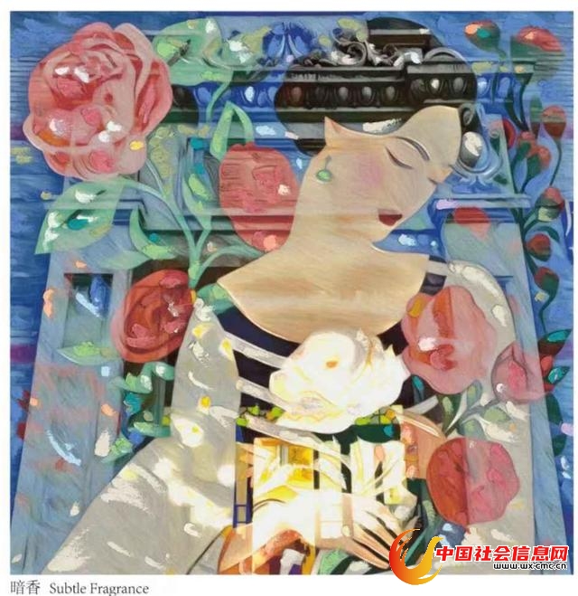 《琉璃》则通过晨光穿透拱窗的瞬间,构建出城市日常的诗意隐喻。画中女子手持白玫瑰倚窗而立,琉璃材质的透光性与不可穿透性形成微妙张力,恰如都市女性在保持开放心态的同时,又守护着内在的坚韧边界。