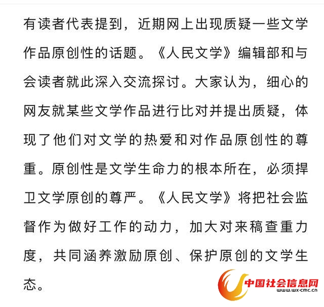 《人民文学》杂志社表示“将把社会监督作为做好工作的动力”
