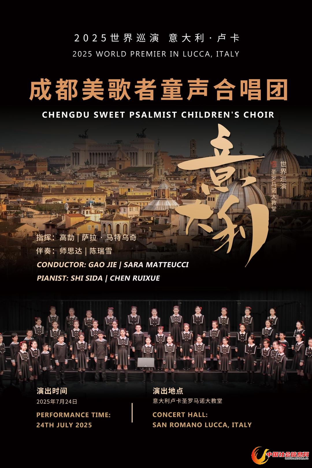 2025年是中意建交55周年、歌剧巨匠普契尼逝世100周年。红星新闻记者今日获悉,成都美歌者童声合唱团宣布启动2025世界巡演,巡演首站选定意大利文艺复兴古城、普契尼的故乡卢卡,于7月24日为意大利卢卡国际音乐节奏响充满活力与希望的盛夏乐章。据了解,成都美歌者童声合唱团成为首个获邀意大利卢卡国际音乐节,并举办专场音乐会的中国童声团体。