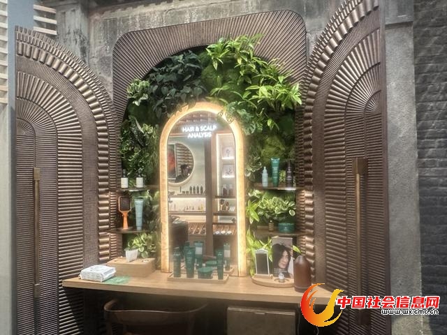 记者走进门店的第一感受就是,“体验”几乎成为了店内的隐藏动线。品牌在一楼设置了“青丝之门”体验区、浣手区、Chakra能量香氛区、Shampure区、植萃体验区等。例如,“青丝之门”体验区配备了800倍显微检测仪器,能清晰呈现头皮、毛囊及秀发的健康状况。现场工作人员介绍,该体验区能提供个性化方案,让消费者通过产品试用感受精细化护理。