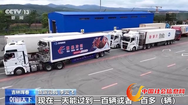 总台央视记者 唐颖:随着珲春口岸的开关,从俄罗斯运输海鲜的车辆正在这里进行通关手续的办理,20个小时以内,这些海鲜就将通过公路运输送抵北京和上海等地。