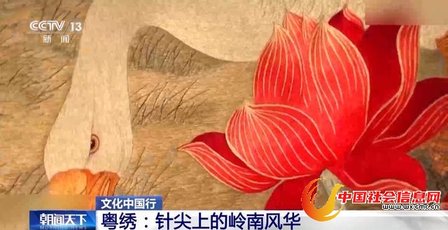 在广州市的粤绣传承基地——广州绣品工艺厂,一幅幅绣品佳作逐一陈列;其中不少绣品原画均出自当今岭南画派画家的画作。