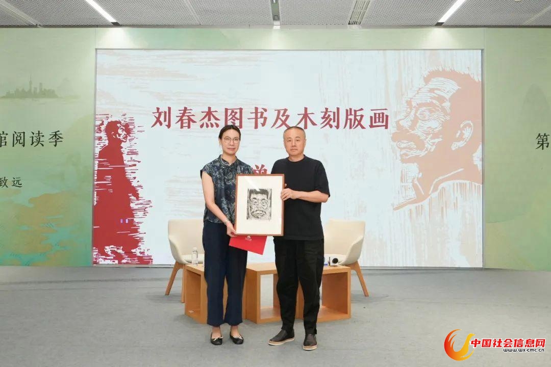 展览开幕式于7月26日在东馆举行。开幕式上,刘春杰向上海图书馆捐赠其鲁迅主题系列图书及两幅版画作品。随后,刘春杰与作家陈佳勇对谈,围绕鲁迅精神的当代意义与版画艺术的创作本质展开深入讨论。