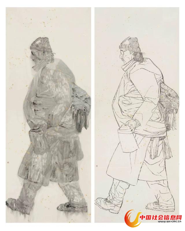 上观:在《心灯》系列中,您刻画了十多位身材高大的藏民,这组画颇有动感,创作的灵感来自哪里?