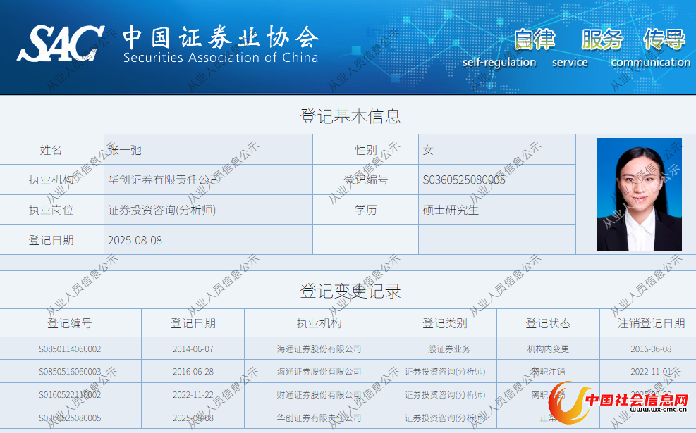 8月13日消息,中国证券业协会从业人员公示信息显示,电新行业知名分析师张一弛于今年5月20日从财通证券(601108.SH)离职后,已于8月8日入职华创证券。