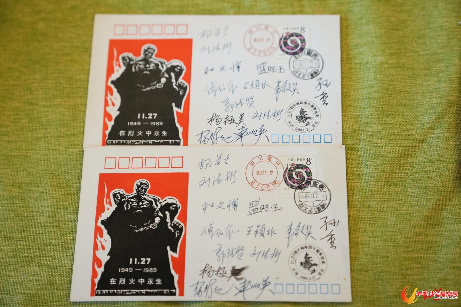 ▲韩子重外甥唐立凡参加烈士纪念活动时,各个烈士家庭留下的签名