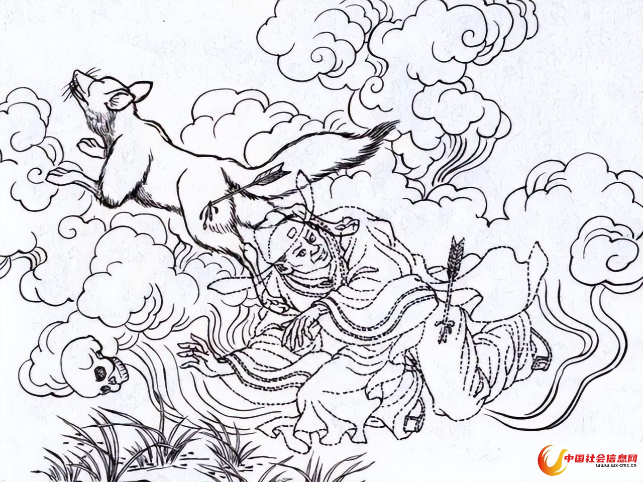 和尚贪财,被狐媚女子拿银子诱惑。谁知,狐媚女子竟然是狐狸精所化,她目的是要夺取和尚这把能够辟邪的屠刀。