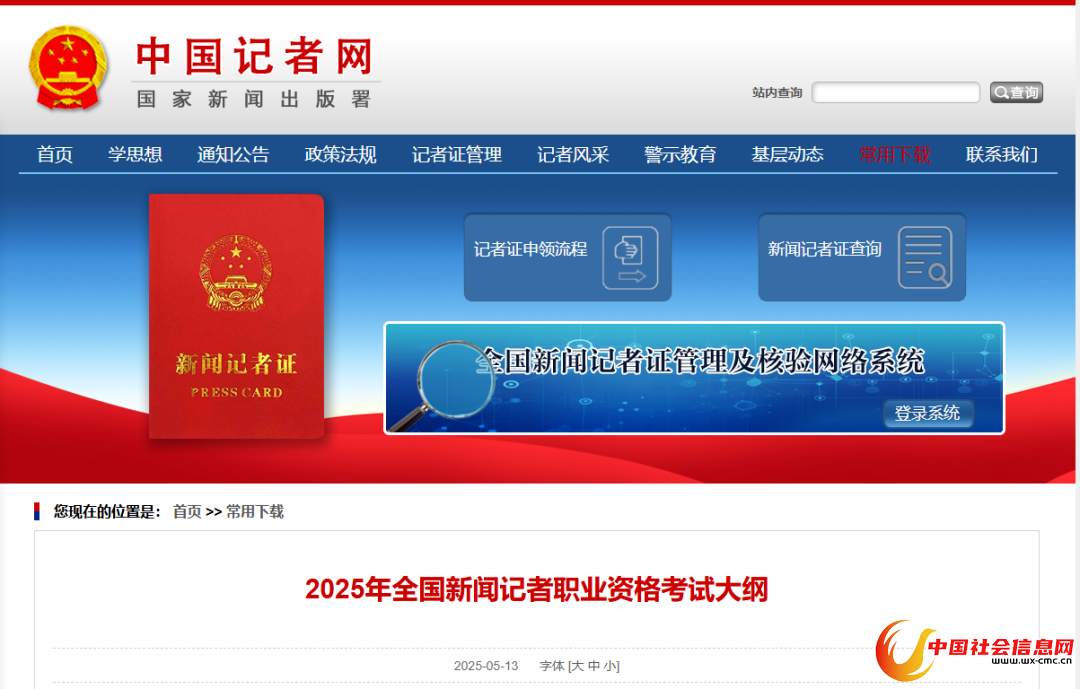 近日,全国新闻记者职业资格考试办公室发布了《2025年全国新闻记者职业资格考试大纲》。