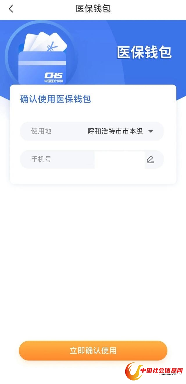 ■点击确认使用钱包,显示使用地和手机号信息,确认信息无误之后,点击立即确认使用,即完成钱包开立: