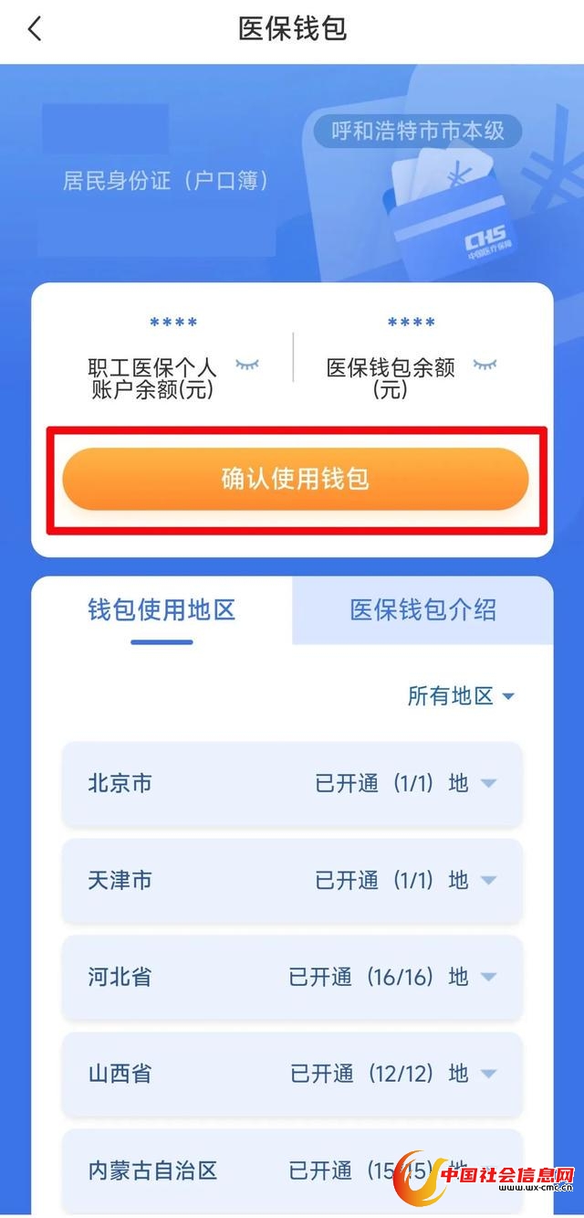 ■在国家医保服务平台首页,点击医保钱包,进入之后会显示医保钱包待开通信息,确认使用钱包界面: