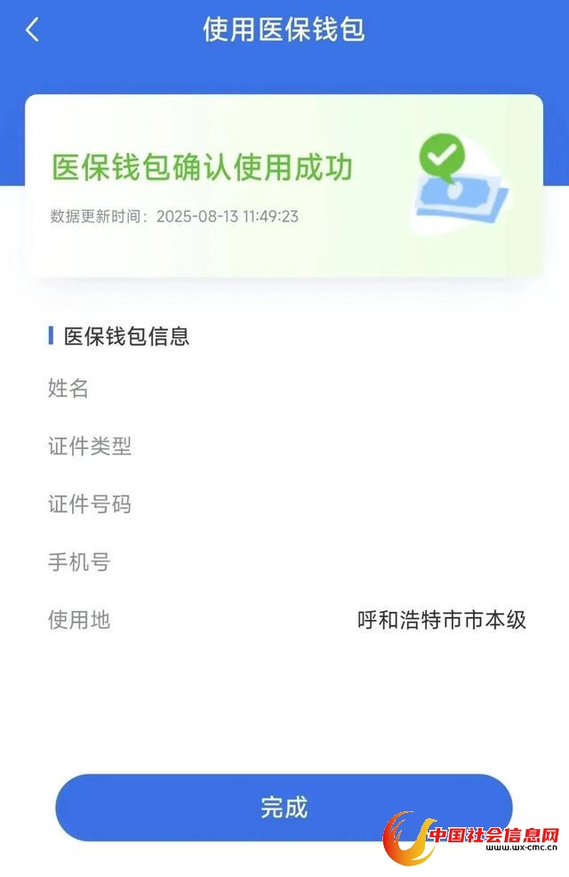 ■使用医保钱包界面返回成功之后,点击完成显示如下: