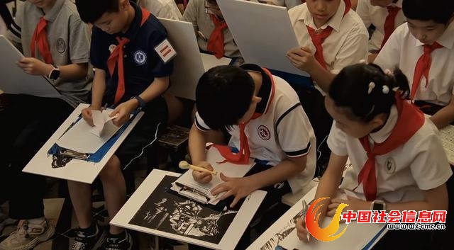 “这堂课不是简单的‘历史灌输’,而是让学生在触摸刀痕、撰写文字、录制视频的过程中,主动思考‘艺术与家国’的关系,更敢表达自己的见解。”左联馆工作人员还表示:“版画是抗战历史的‘活化石’,让学生通过创作与表达对话历史,正是红色教育‘入耳入脑入心’的生动实践。”