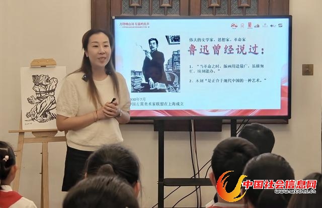 “左翼青年当年冒着白色恐怖创作,为什么偏偏选择木刻这种形式?”“这些唤醒民心的作品,是怎么传到不识字的老百姓手中的?”当鲁迅小道文化志愿者方济力老师讲述左翼文艺工作者的抗争故事时,一只只小手高高举起,问题接连不断。方老师结合1931年鲁迅举办木刻讲习会的历史,耐心解答:“木刻材料易得、制作快速,还能大量复制传播,在那个年代,就是最‘接地气’的革命宣传工具!”互动中,历史的细节逐渐清晰,思维的火花频频碰撞。
