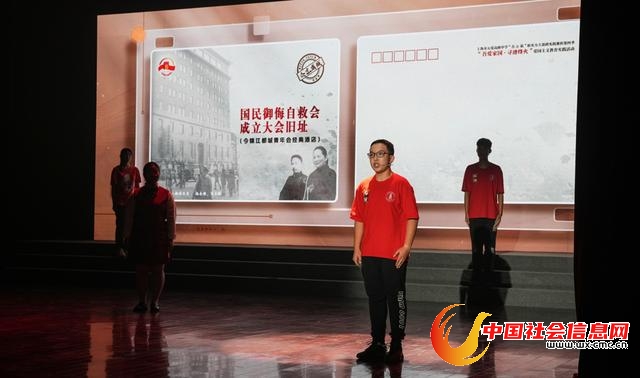 “寻音吾爱”小组的微视频《从战歌到号角》和“众志成城”小组的系列主题明信片是同学们利用假期走访黄浦区内红色旧址后的成果。如今的黄浦剧场曾经是金城大戏院所在地,在这里,作为电影《风云儿女》主题曲的《义勇军进行曲》首次播放;在老照片中,同学们找到了位于今天金陵中路的黄金大剧院,在九一八事变爆发两周年之际,这里曾经上演话剧《怒吼吧!中国》;曾经的蓬莱大戏院如今已经变成居民小区,在这儿,曾上演过著名抗战剧《保卫卢沟桥》;今天热闹的悦荟广场曾是大陆商场,《救亡日报》就在此诞生……