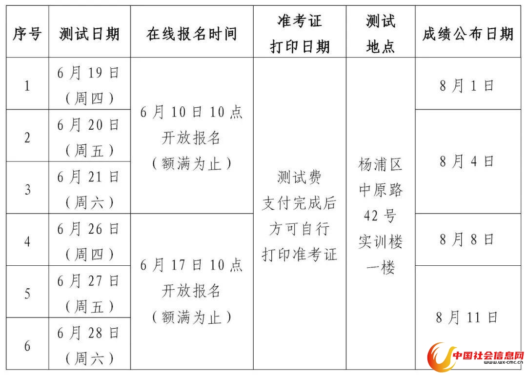 4.考生应按准考证上的规定时间报到。迟到30分钟以上者,取消测试资格,测试费不予退还。