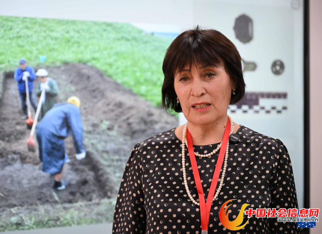 6月3日,哈萨克斯坦伊塞克国家历史文化博物馆馆长古丽米拉接受新华社记者采访。新华社记者 李任滋 摄