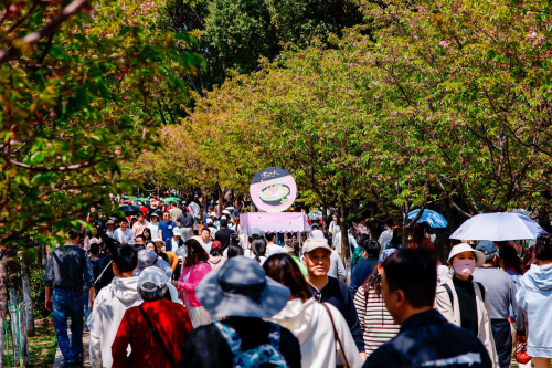 红粉佳人、迎春樱、郁金香、紫玉兰等景观花卉盛放迎客。