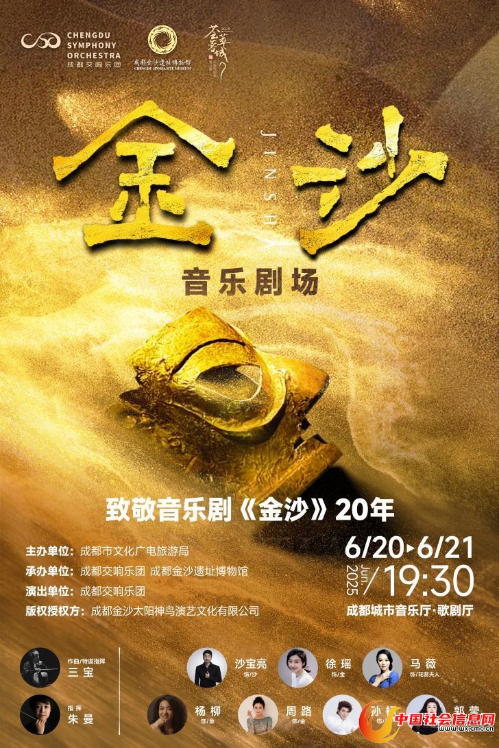 6月20日晚,开幕大戏——致敬音乐剧《金沙》20年音乐剧场将拉开活动序幕。音乐剧《金沙》由著名音乐人三宝、剧作家关山等艺术家联袂创作,20年来演出逾2000场,创下中国音乐剧演出场次与上座率双料纪录,其悠扬旋律与动人故事将率先奏响本届艺术盛典的华章。