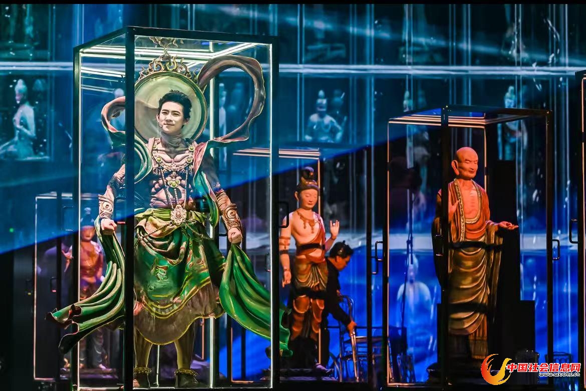 据悉,作为中国国家话剧院精心打造的重点剧目,《受到召唤·敦煌》集结了国内一流的舞台艺术团队,融汇了非遗、科技、禅意、潮流、AI等元素,打破传统观演模式和传统舞台结构,结合3D影像投影技术,在科技的赋能下制作“戏剧+电影+Live”大片,让每一位观众都能在剧场中感受到“被召唤”的震撼体验。