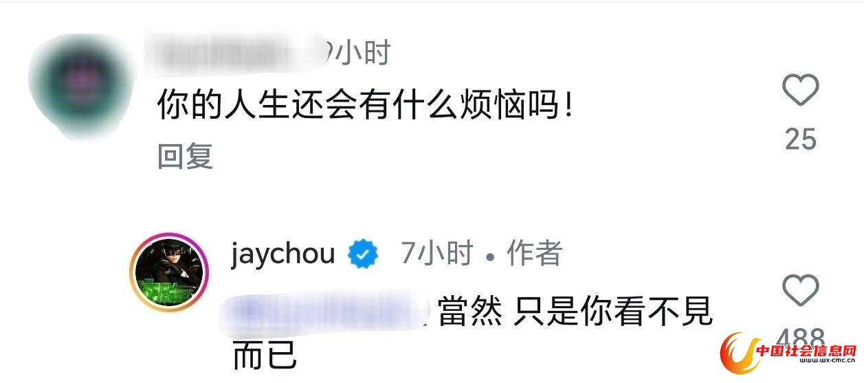 7月6日,周杰伦在社交平台分享近期自拍照,有网友在评论区问“你的人生还会有什么烦恼吗”,周杰伦回复:“当然,只是你看不见而已。”
