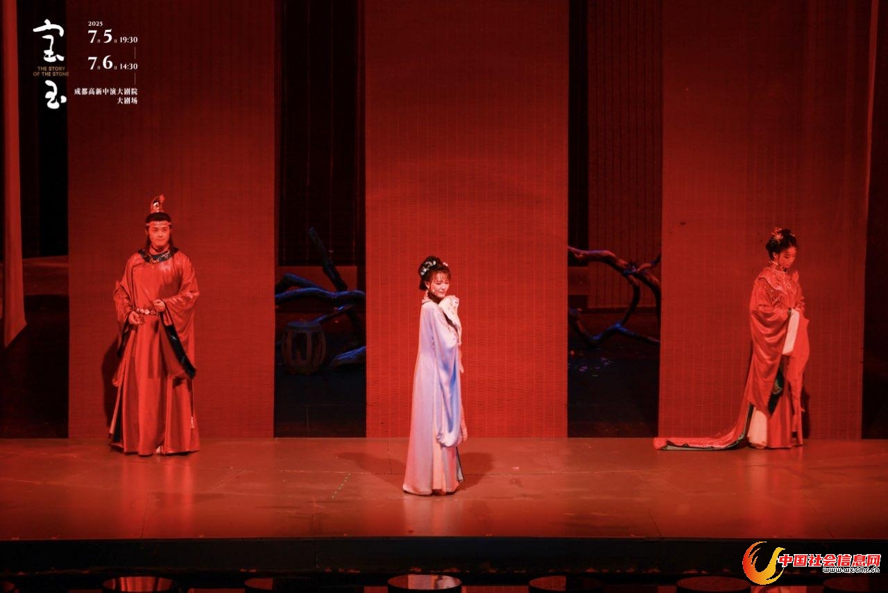 继现象级舞剧《红楼梦》之后,又一部致敬经典的舞台作品来到成都。7月5日晚,原创音乐剧《宝玉》在成都高新中演大剧院与观众见面,该剧以极具东方美学的舞台表达与创新的音乐叙事,带领观众穿越百年红楼梦境。