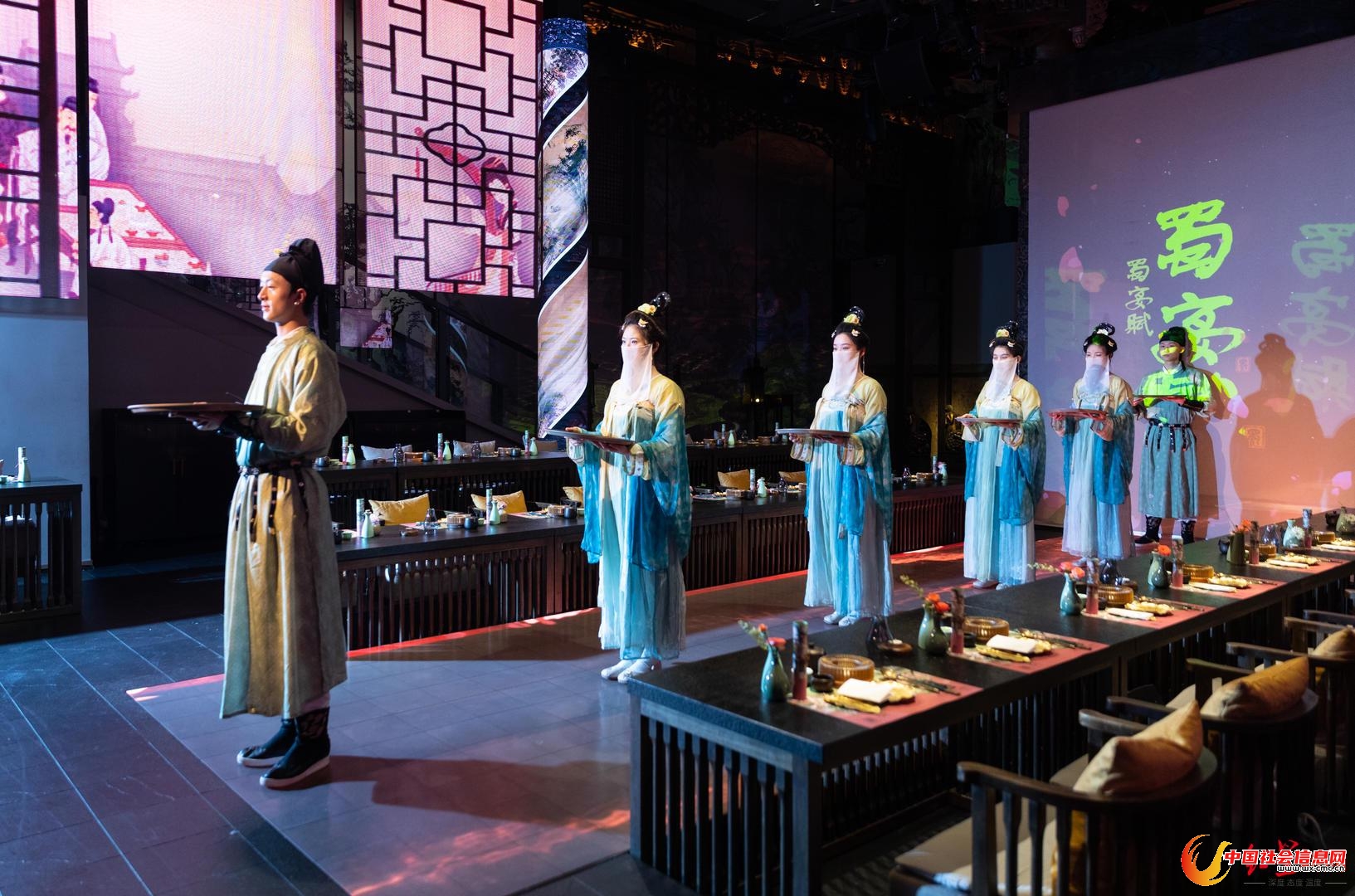 “在餐食设计上,我们采用了中国传统的分餐礼制,让顾客分席而坐,这对菜品温度、时间、顺序等细节要求极高;在光影效果上,则引入专业舞美舞秀视觉技术,通过灵活手法实现时空穿越的舞台氛围。”杨孜介绍,为强化沉浸感,蜀宴赋还引入“换装”体验,可挑选超400套汉服主题妆造,不少顾客会主动在社交平台分享体验,带动蜀宴赋话题在抖音、小红书等平台突破千万曝光量。