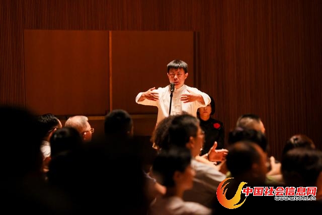 音乐会乐章开演前,在非遗项目“巢氏导引法”传承人徐海朋指引下,现场观众体验导引练习放松身心。