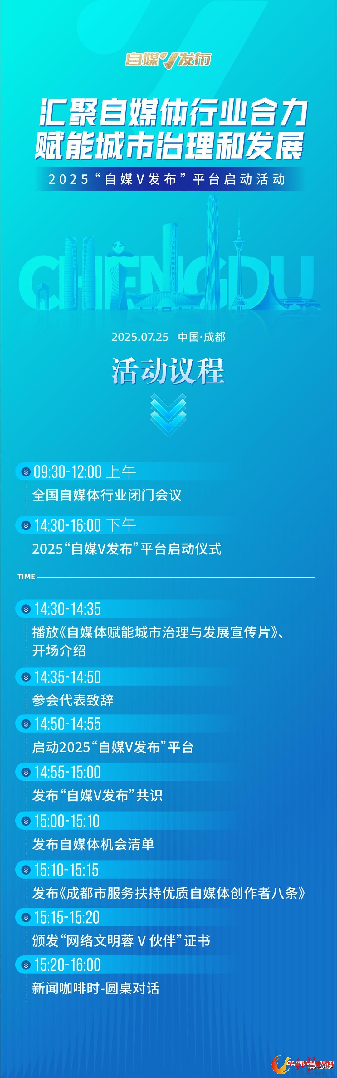 网络大V蓉城聚首、全国平台创新启动、“机会清单”精准链接、“服务八条”政策护航、“共识九条”凝聚合力、闭门研讨深度碰撞……盛夏时节,成都即将迎来一场聚焦自媒体行业跨区域协同发展的活动。 7月25日,以“汇聚自媒体行业合力 赋能城市治理和发展”为主题的2025“自媒V发布”平台启动活动将在成都举行。届时,20余家省市级行业协会和全国40余位头部及优质网络名人将共话自媒体行业发展机遇。 红星新闻记者了解到,本次活动由四川省互联网行业联合会、成都市互联网界联合会指导,成都市自媒体协会主办,成都传媒集团、成都传媒产业集团承办。