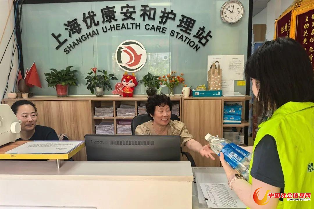 相比往年“送清凉”,此次行动包头路睦邻中心跨出了“服务半径”,还为养老服务一线的“两企三新”——优康护理的工作人员,送去了盐汽水和降温冰贴。工作人员递上消暑物资的同时叮嘱他们要注意休息,不要太劳累。现场的护理员笑着接过物资,激动地说:“平时都是我们给老人送关怀,今天轮到我们被‘宠’了!”