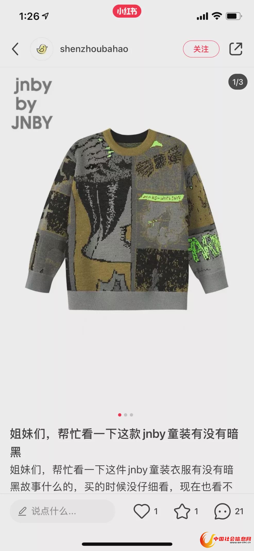 买过jnby童装的家长们,如今已如惊弓之鸟,拿捏不准、不懂得图案想要表达什么含义的都纷纷把衣服发到网上请大家帮忙看。