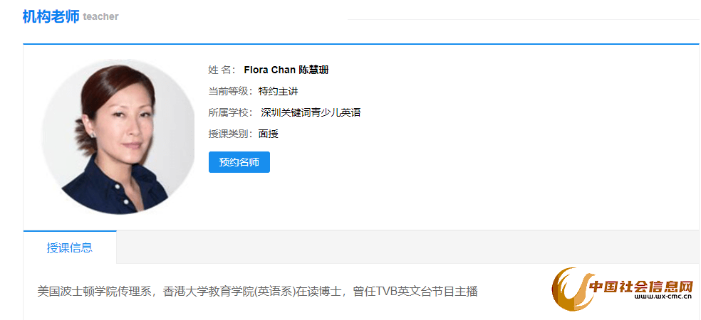 朋友昨天发我这张图,深圳某英语培训机构的老师名单里,惊现了陈慧珊的名字。