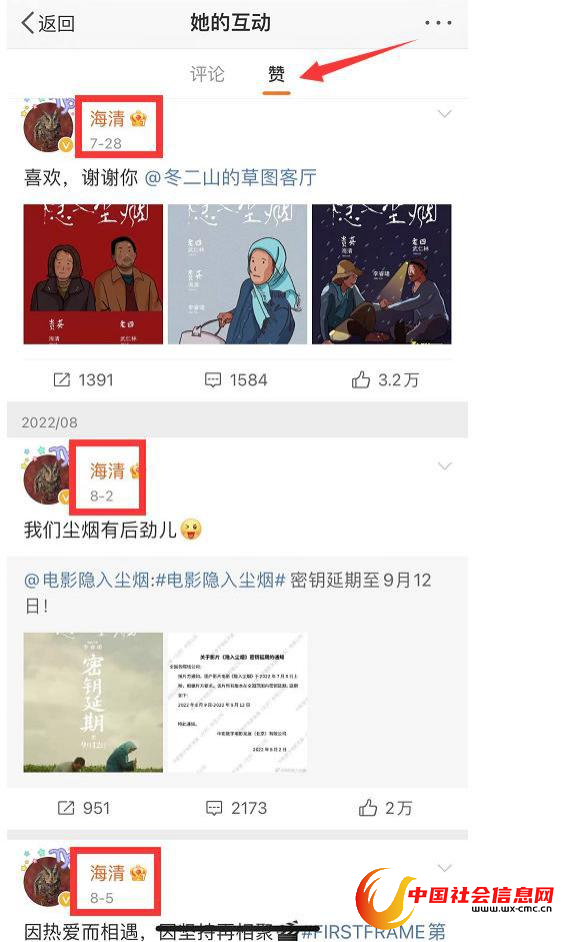 而且朱锐的微博,一直有陆续给海清点赞。