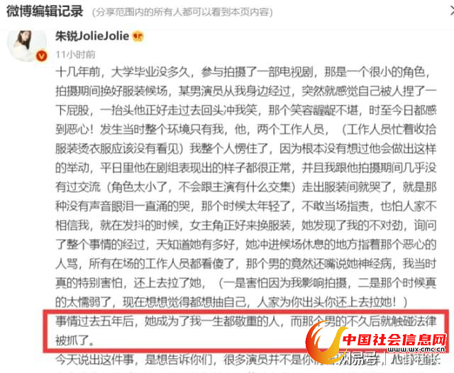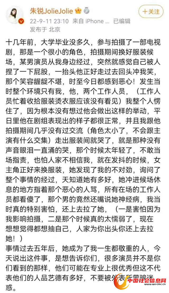李易峰嫖娼被抓曝光后,女演员朱锐有感而发,深夜写了篇文章回忆自己当年演戏被性骚扰的经历,提醒大家作品不等于艺德,不要被一些演员风光的外表迷惑。