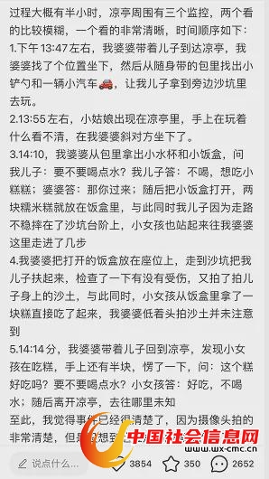 根据贴主叙述,她的婆婆带孙子在小区玩,哄孙子的时候一眼没注意,自己做的桂花糕就被旁边一位七八岁的小女孩拿来吃了一块。