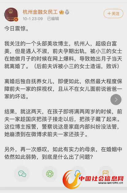 杭州一位超级白富美嫁了一个软饭男,结果遇人不淑,对方孕期出轨。白富美毅然选择离婚独自抚养女儿,并最大程度地保障前夫一家探视权,没想到前夫却在孩子即将满两岁的时候把孩子抢走了。