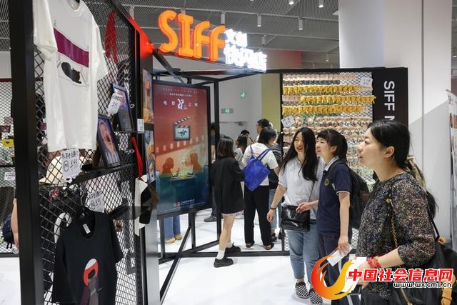 影迷在上海影城的电影节文创售卖区选购电影节文创。