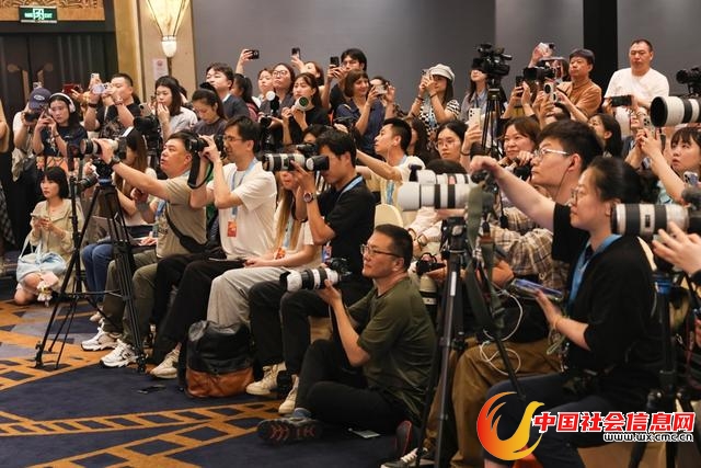 第27届上海国际电影节金爵奖评委媒体见面会现场的媒体记者。