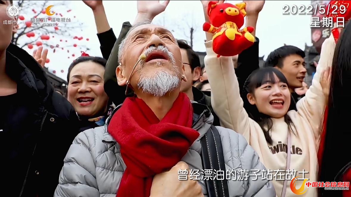 歌声如磁石般聚拢人群。川剧演员、说唱青年、游客、孩童渐次驻足,一位环卫工人放下扫帚随旋律起舞,上千人自发汇成洪流般的合唱。当唱至“你是大海永不干涸”,陈彼得蓦然仰首向天,攥紧拳头按在胸口,热泪滚落:“我的祖国!”这一声呼喊,凝结着漂泊游子72载的乡愁——3岁离蓉的游子,以苍老身躯立成一座归航的灯塔,照亮了每个中国人血脉深处的家国星河。