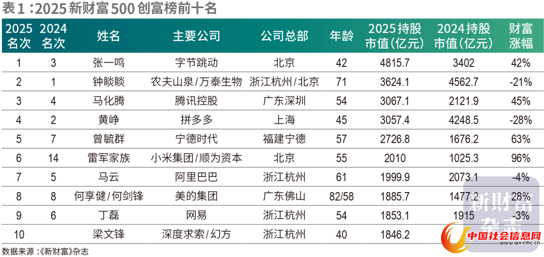 ▲2025新财富500创富榜前10名,图源:《新财富》杂志