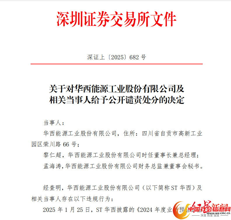 微成都报道日前,深交所发布公告称,ST华西(002630.SZ)及相关当事人因违规行为受到公开谴责处分。被处分的包括ST华西、时任董事长兼总经理黎仁超以及财务总监兼董事会秘书孟海涛。
