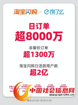 红星资本局7月7日消息,今日,淘宝闪购和饿了么联合宣布,淘宝闪购日订单数超8000万,其中非餐饮订单超1300万。昨日,美团公布的信息显示,截至7月5日23时左右,美团即时零售当日订单突破1.2亿单,其中,餐饮订单已超过1亿单。