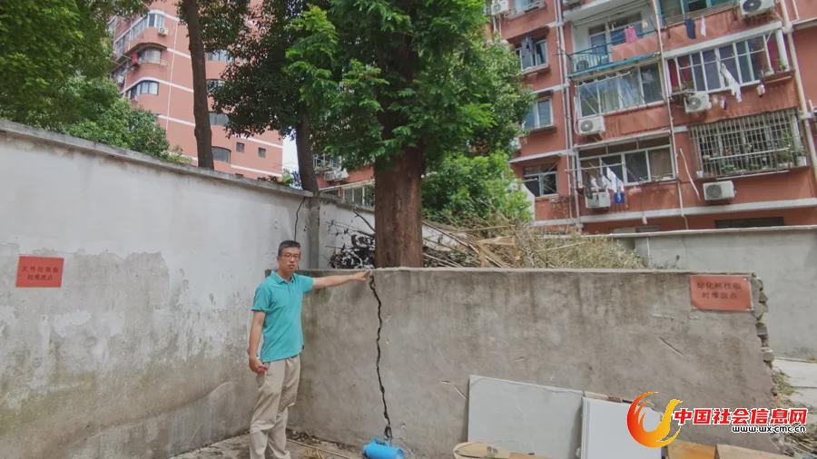 在双阳二村小区,4棵高大的香樟树也成了居民安全的威胁者。双阳二村小区建成于上世纪50年代,63、64号楼北侧几米外,4棵香樟树紧挨着一堵围墙生长。围墙另一侧,就是控江中学的校园。令人揪心的是,4棵香樟树冠一侧轻、一侧重,树木向控江中学围墙一侧倾斜,造成多处地砖开裂。