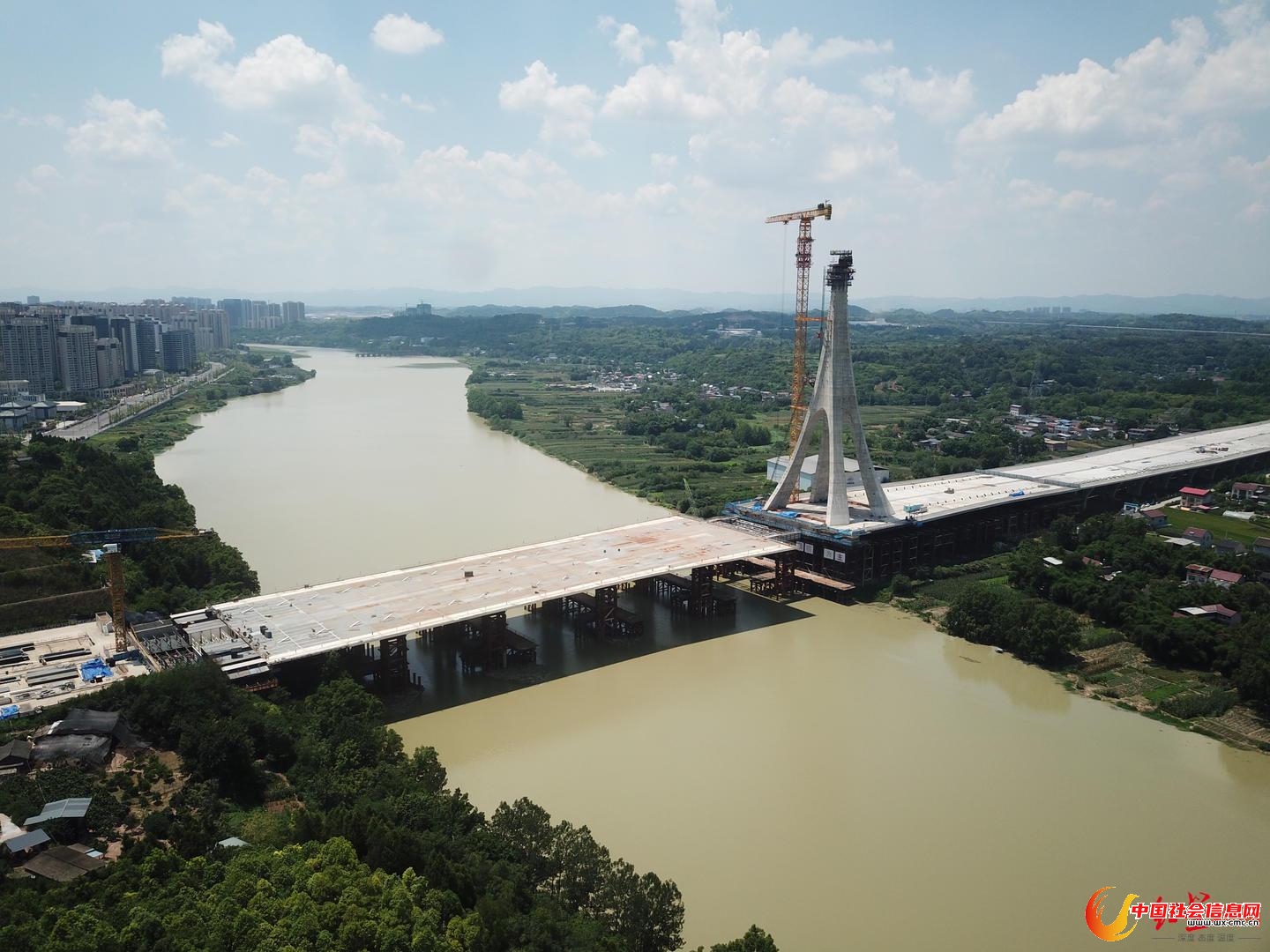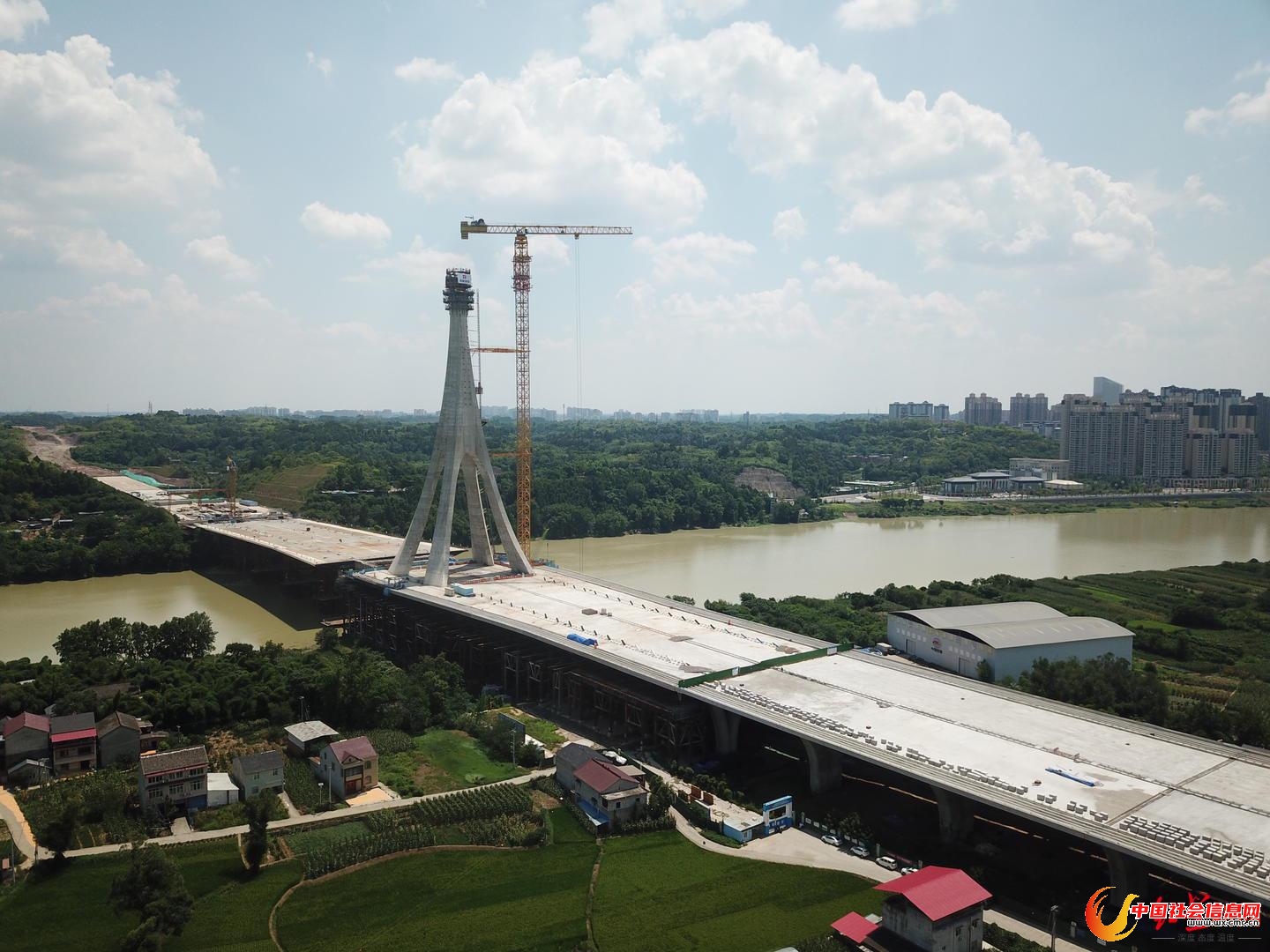 ▲成都东西城市轴线沱江大桥主塔精准封顶