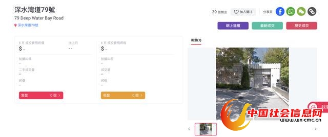 此前,澎湃新闻查询香港中原地产官网,深水湾道79号并非正在销售的正常页面,并未显示在售价格、月供、实用面积等基本信息。
