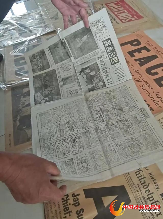 “这是战时大名鼎鼎的《联合画报》,你看,这上面写着‘日本无条件投降’。”杨翔飞指着一张报纸说,记者注意到该份画报上还有以《粉碎日寇一切阴谋》《日军纷纷放下武器》等为题的报道。