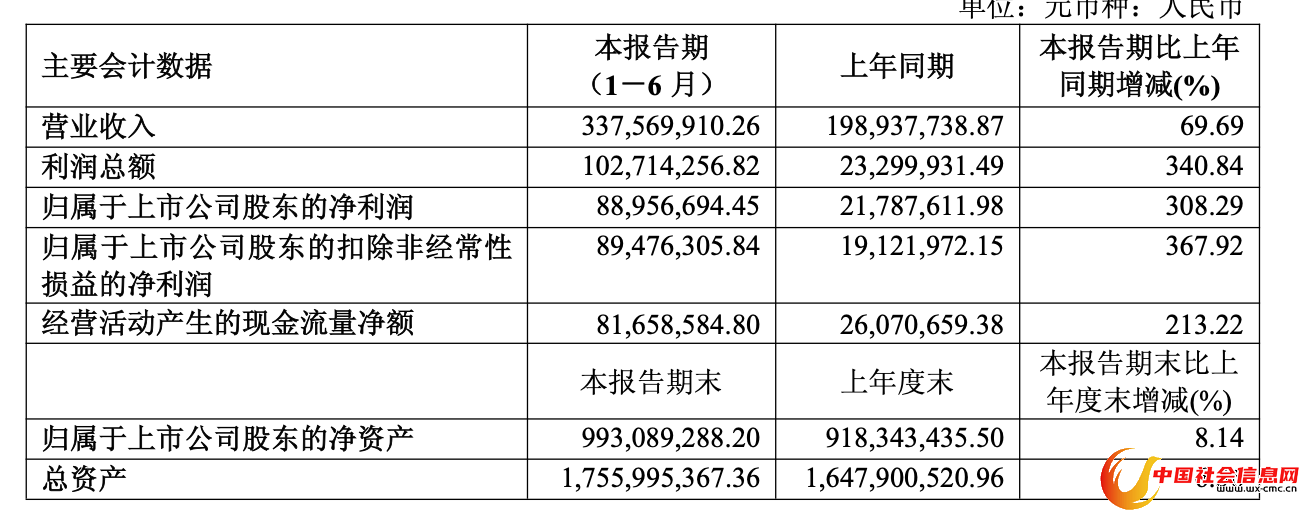 具体来看,2025年上半年,公司实现营业收入3.38亿元,同比增长69.69%;实现归属于上市公司股东的净利润8895.67万元,同比增长308.29%;实现归属于上市公司股东的扣除非经常性损益的净利润8947.63万元,同比增长367.92%。