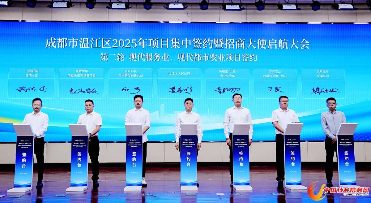 5月15日,成都市温江区召开“聚势金温江·领航新未来”2025年项目集中签约暨招商大使启航大会。近百家企业及行业商协会、金融机构共聚一堂、共话发展,共绘温江发展蓝图。